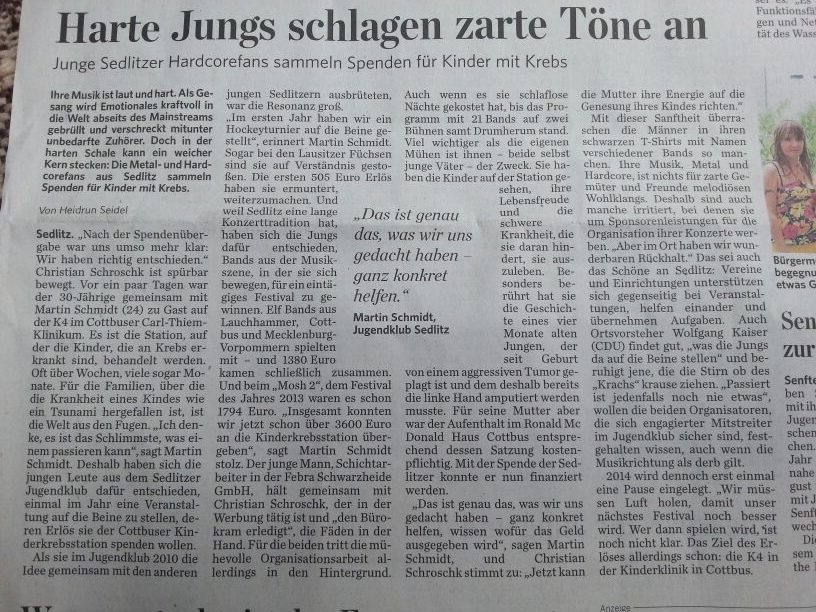 Zeitungsartikel Mosh gegen Krebs II
